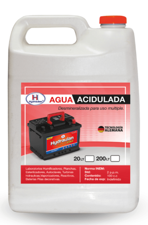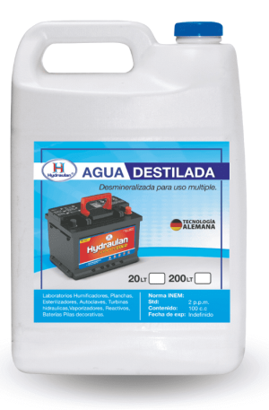 Líquido incoloro e inoloro, que se obtiene a través de filtros de intercambio iónico y catiónico. Proceso que elimina las sales disueltas en el agua como calcio, magnesio, hierro, cobre, zinc y aluminio; las cuales son responsables de incrustaciones y corrosión sobre las placas de las baterías automotrices.