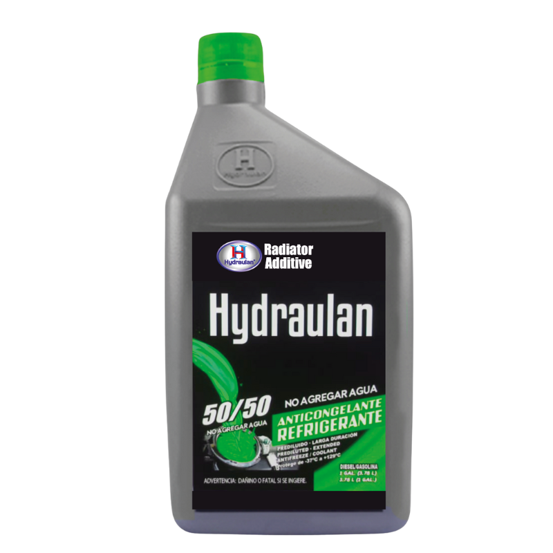 El anticongelante + refrigerante 50/50 Hydraulan proporciona la máxima protección contra la congelación a -84 °F y el derrame por ebullición a +276 °F. Protege todos los sistemas de refrigeración, metales, incluido el aluminio, contra los daños del óxido y de la corrosión